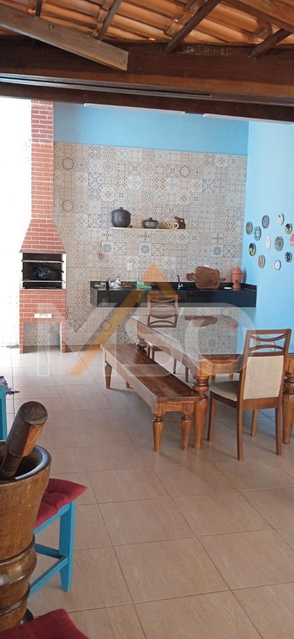 Área gourmet grande com churrasqueira e pia toda de varanda de telhado de Massaranduba